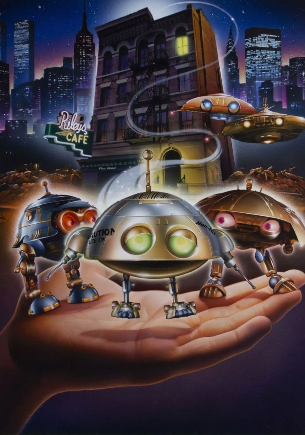 Los empobrecidos residentes de un bloque de apartamentos amenazado de demolición por un grupo de especuladores del suelo consiguen la ayuda milagrosa que esperaban en forma de unos pequeños platillos volantes extraterrestres que necesitan la electricidad suministrada por los apartamentos para sobrevivir. En agradecimiento lucharán con ellos contra los especuladores. Una característica cinta con toda la marca del sello Amblin, productora de Spielberg.
