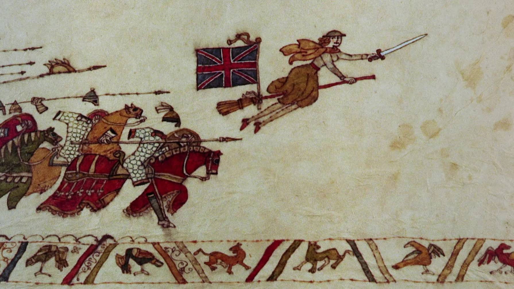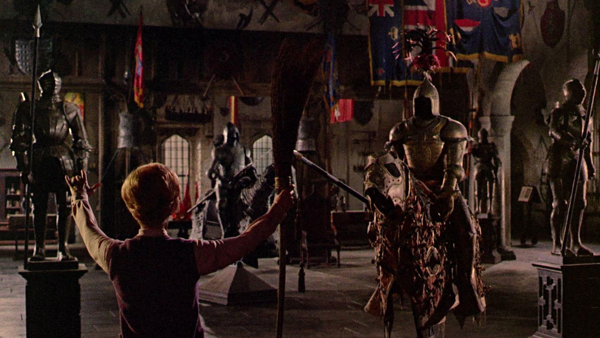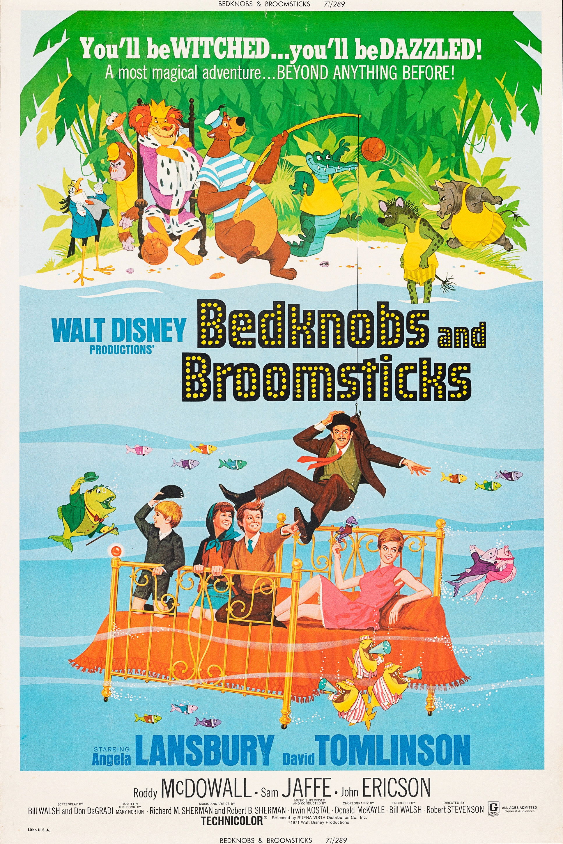 La estricta y severa Eglantine Price (Angela Lansbury) es una bruja aficionada que tiene que hacerse cargo, muy a su pesar, de 3 niños que han sido evacuados al pequeño pueblo costero donde ella vive. Juntos deberán luchar contra el invasor alemán, empleando para ello todos los trucos de Eglantine.