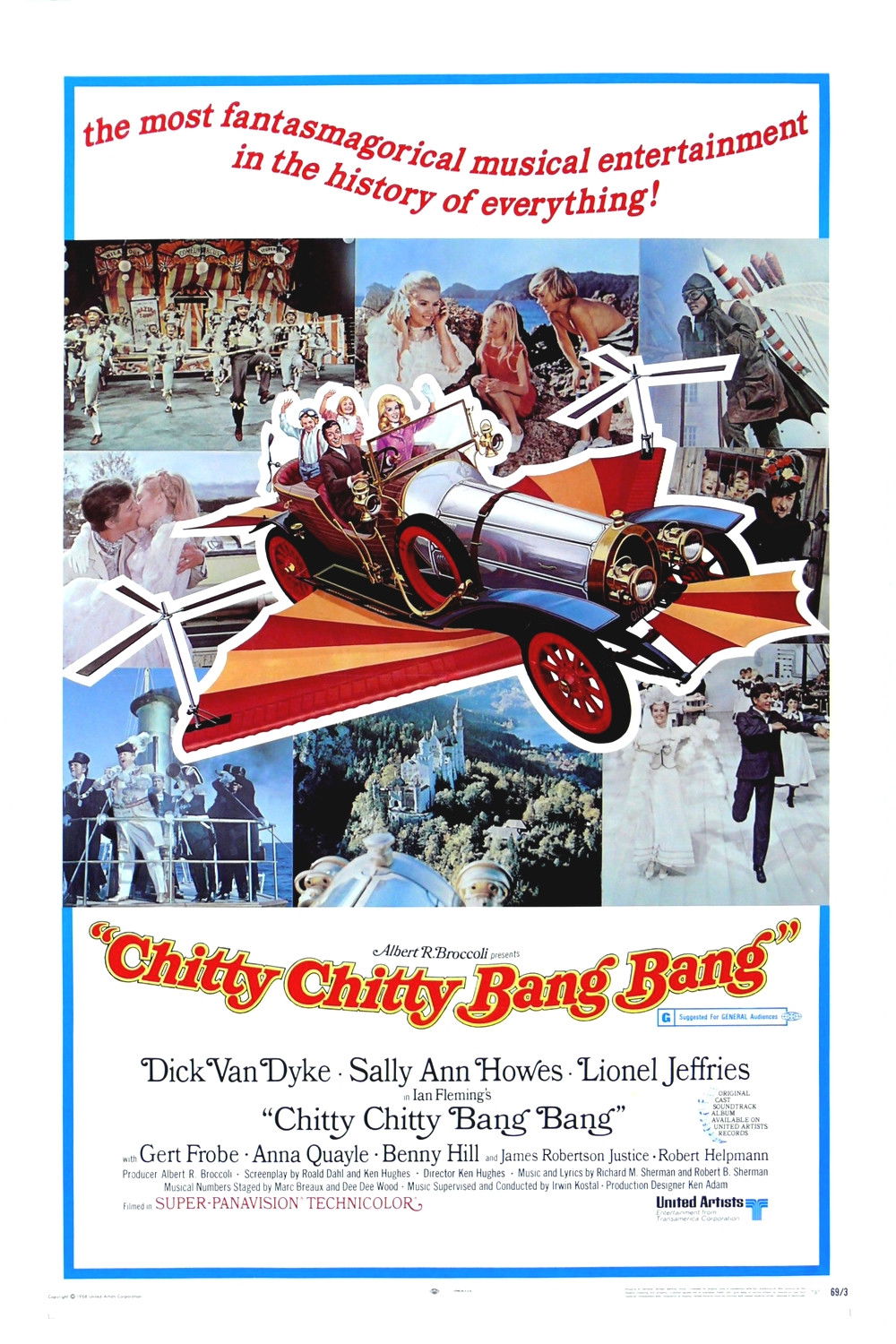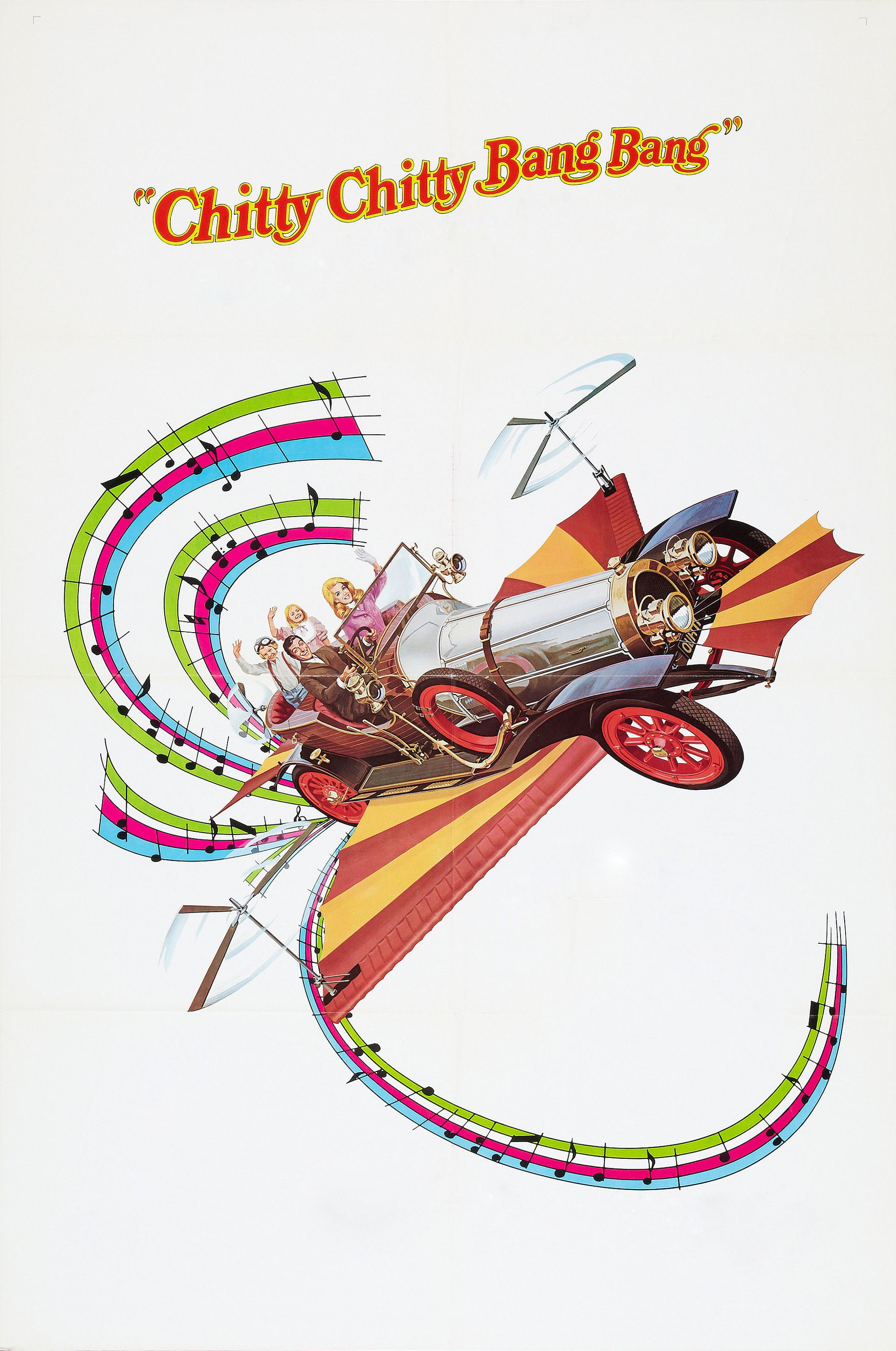 Dick Van Dyke interpreta a un excéntrico inventor de nombre Caractacus Potts, que consigue convertir un viejo coche de carreras (llamado originalmente "Paragon Panther") en un vehículo que podía volar y flotar sobre el agua al que denominó Chitty Chitty Bang Bang. Con este coche viaja junto a su padre (Lionel Jeffries), sus hijos (Heather Ripley y Adrian Hall) y a su bella enamorada (Sally Ann Howes) al mundo mágico de los piratas, castillos y viven aventuras sin fin. Juntos se enfrentan al Barón Bomburst (Gert Fröbe) y a otros villanos. Destaca también en el reparto James Robertson Justice en el papel de Lorde Scrumptious.