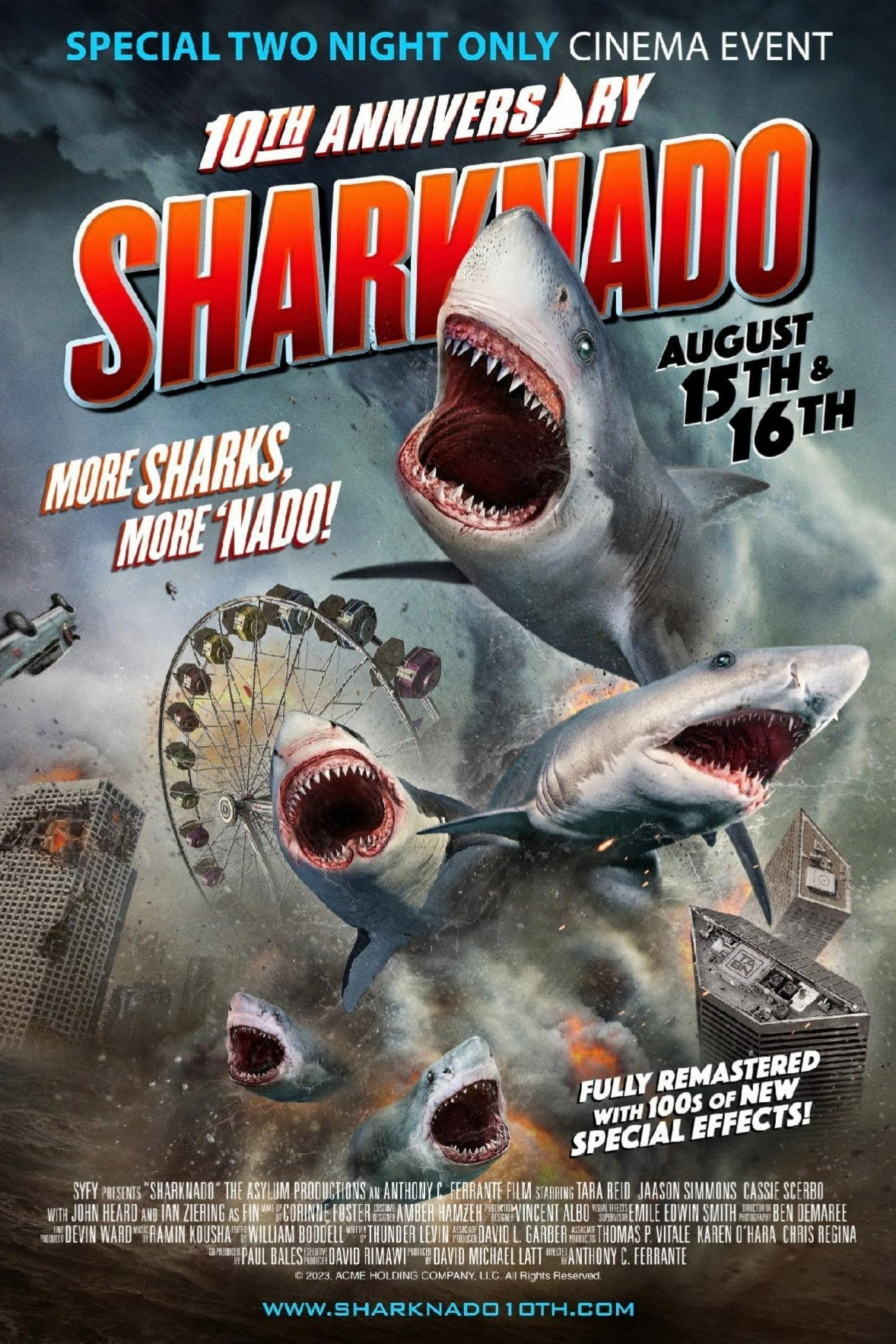 Se centra en una ciudad que está aterrorizada por miles de tiburones que fueron traídos por un huracán. Cuando los tornados se empiezan a formar y criar a los tiburones de la tierra, los asesinos mortales comienzan su destrucción en el agua, la tierra y en el aire.
