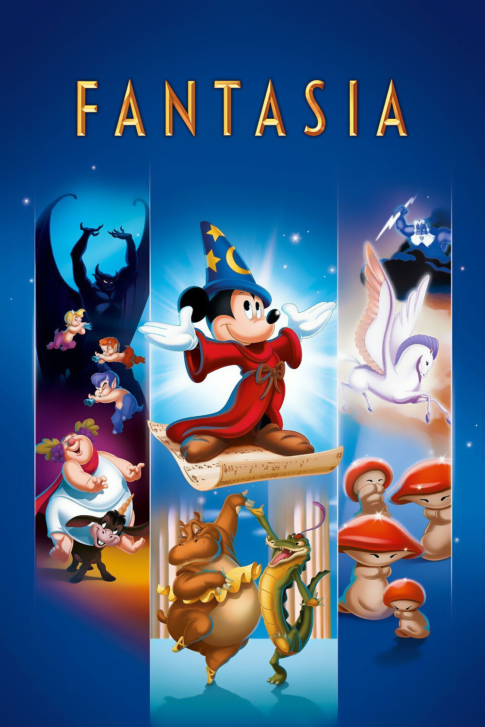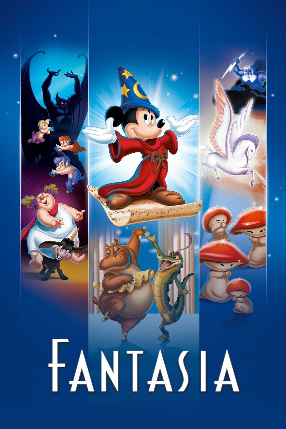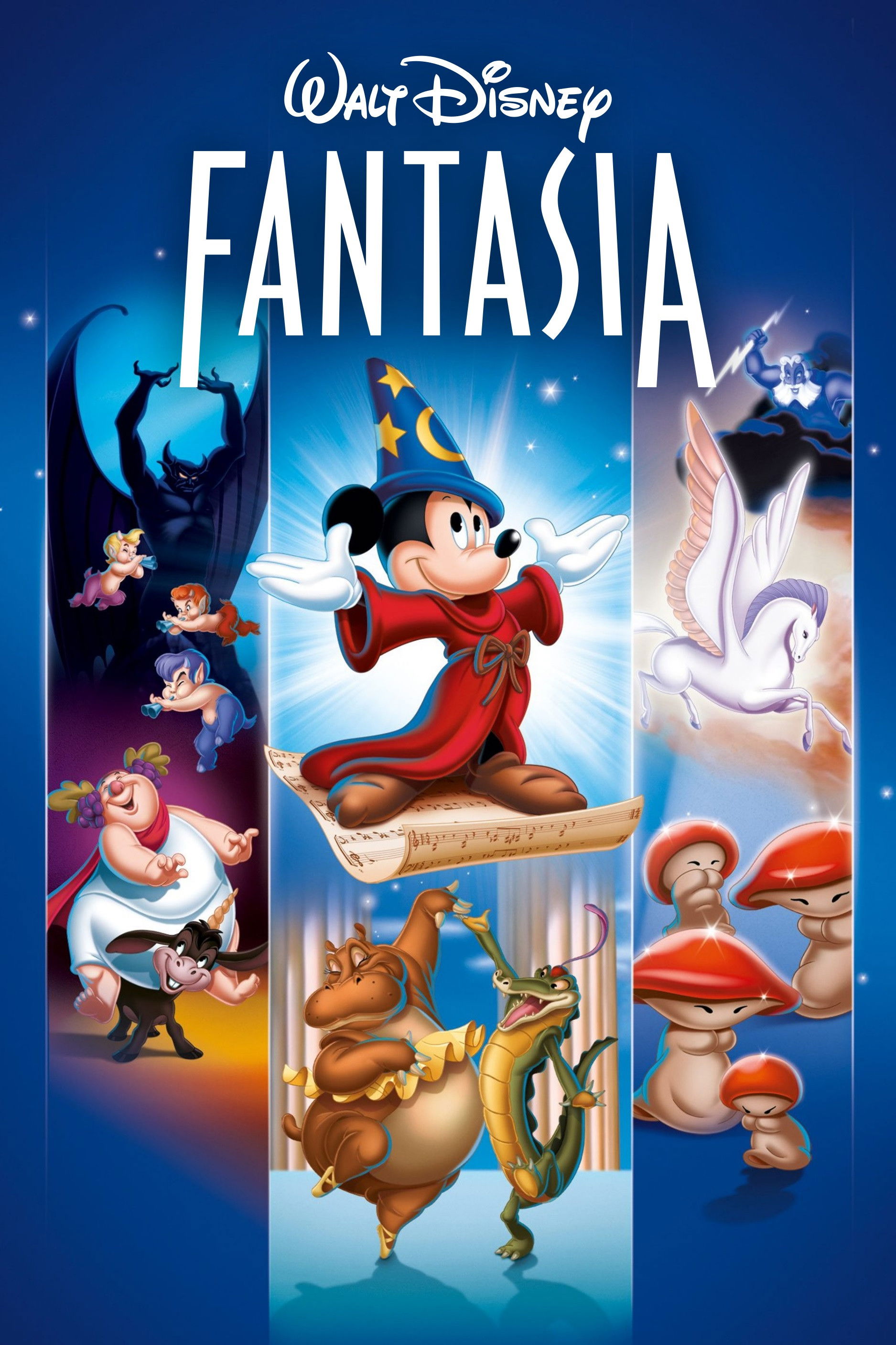 Todo un clásico de la Disney, una colección de interpretaciones animadas de grandes obras de música clásica. En "El Aprendiz de Brujo" (P. Dukas), Mickey Mouse, discípulo de un mago, se mete en un gran embrollo, pues sus conocimientos de magia son muy limitados. "La Consagración de la Primavera" (Stravinsky) cuenta la historia de la evolución, desde los seres unicelulares hasta la extinción de los dinosaurios. "La Danza de las Horas" (Ponchielli) es un fragmento de un ballet cómico interpretado por elefantes, hipopótamos, cocodrilos y avestruces. "Una Noche en el Monte Pelado" de Mussorgsky y el "Ave Maria" de Schubert describen el enfrentamiento entre la oscuridad y la luz.