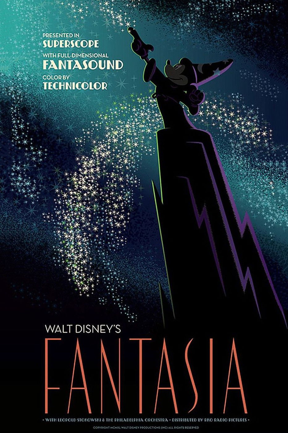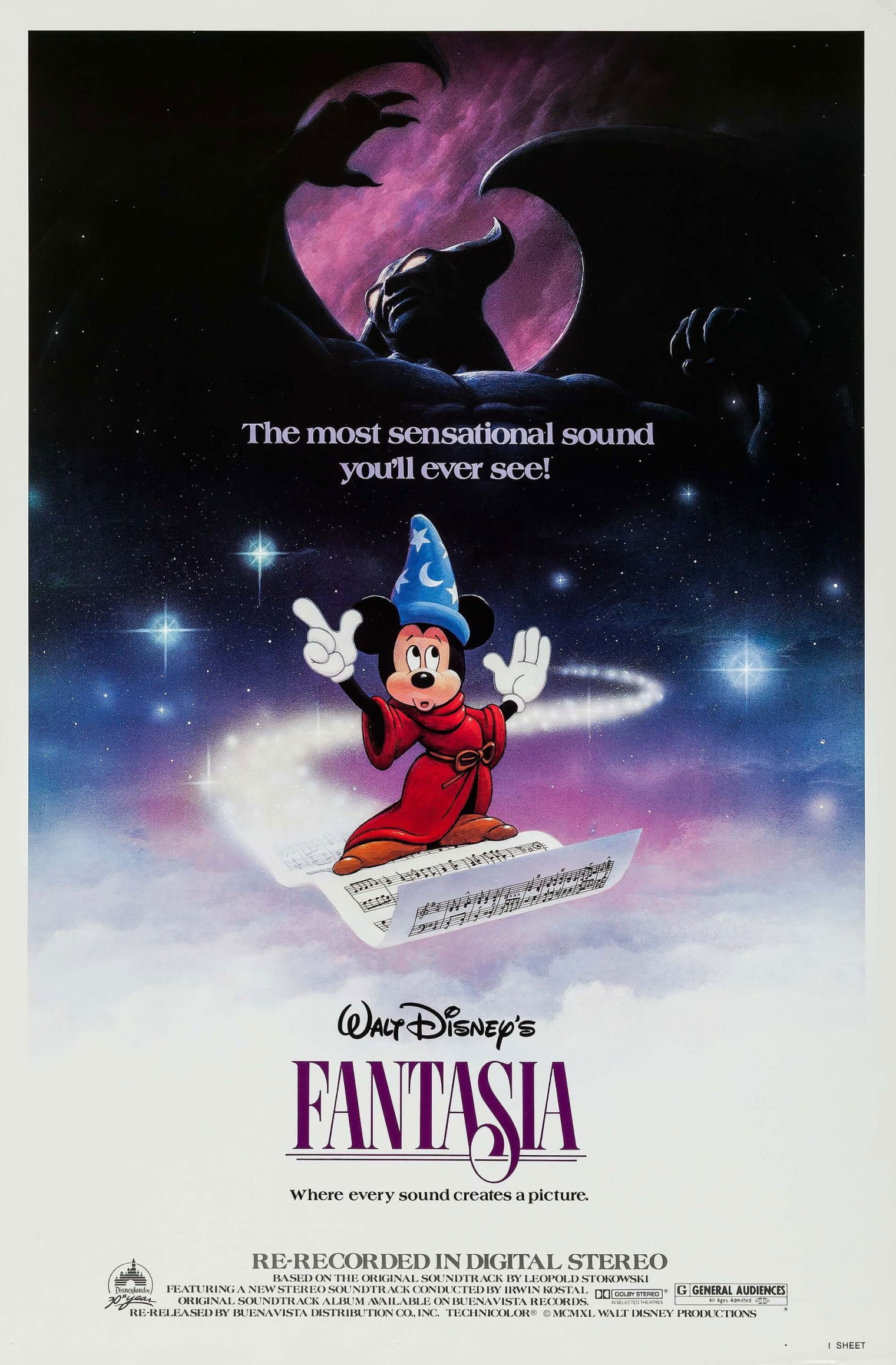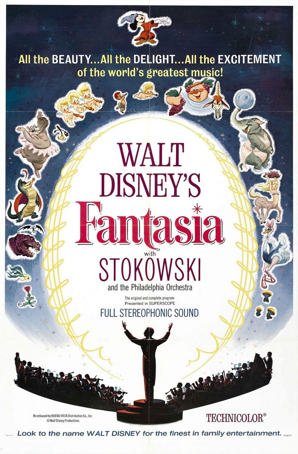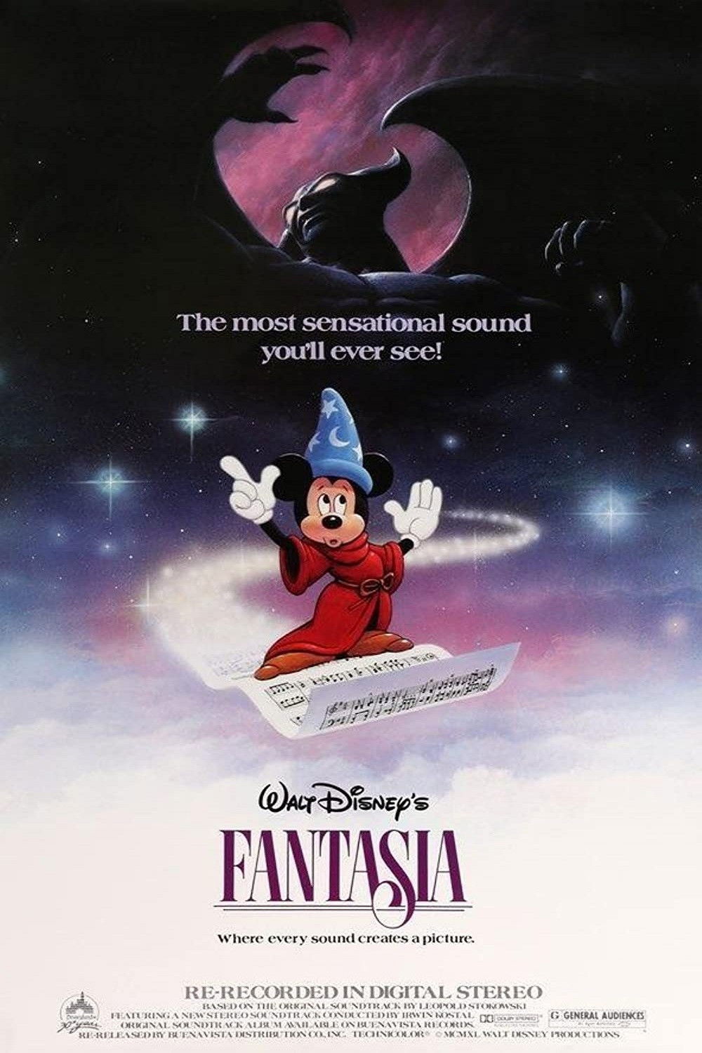Todo un clásico de la Disney, una colección de interpretaciones animadas de grandes obras de música clásica. En "El Aprendiz de Brujo" (P. Dukas), Mickey Mouse, discípulo de un mago, se mete en un gran embrollo, pues sus conocimientos de magia son muy limitados. "La Consagración de la Primavera" (Stravinsky) cuenta la historia de la evolución, desde los seres unicelulares hasta la extinción de los dinosaurios. "La Danza de las Horas" (Ponchielli) es un fragmento de un ballet cómico interpretado por elefantes, hipopótamos, cocodrilos y avestruces. "Una Noche en el Monte Pelado" de Mussorgsky y el "Ave Maria" de Schubert describen el enfrentamiento entre la oscuridad y la luz.